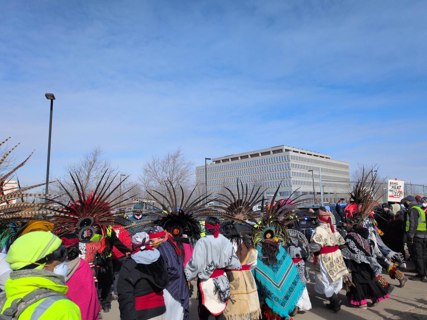 Also on February 27, hundreds of local students hosted a walkout and sit-in at the State Capitol rotunda. The students were accompanied by the Kalpulli Yaocenoxtli dancers, a Mexica-Nahua group. That same day, several protesters were indicted on charges related to the alleged disruption of a church service at a church led by a pastor who worked with ICE. Upon learning of this through the rapid response channels, the students who walked out boarded their bus and drove straight from the Capitol to the federal courthouse.