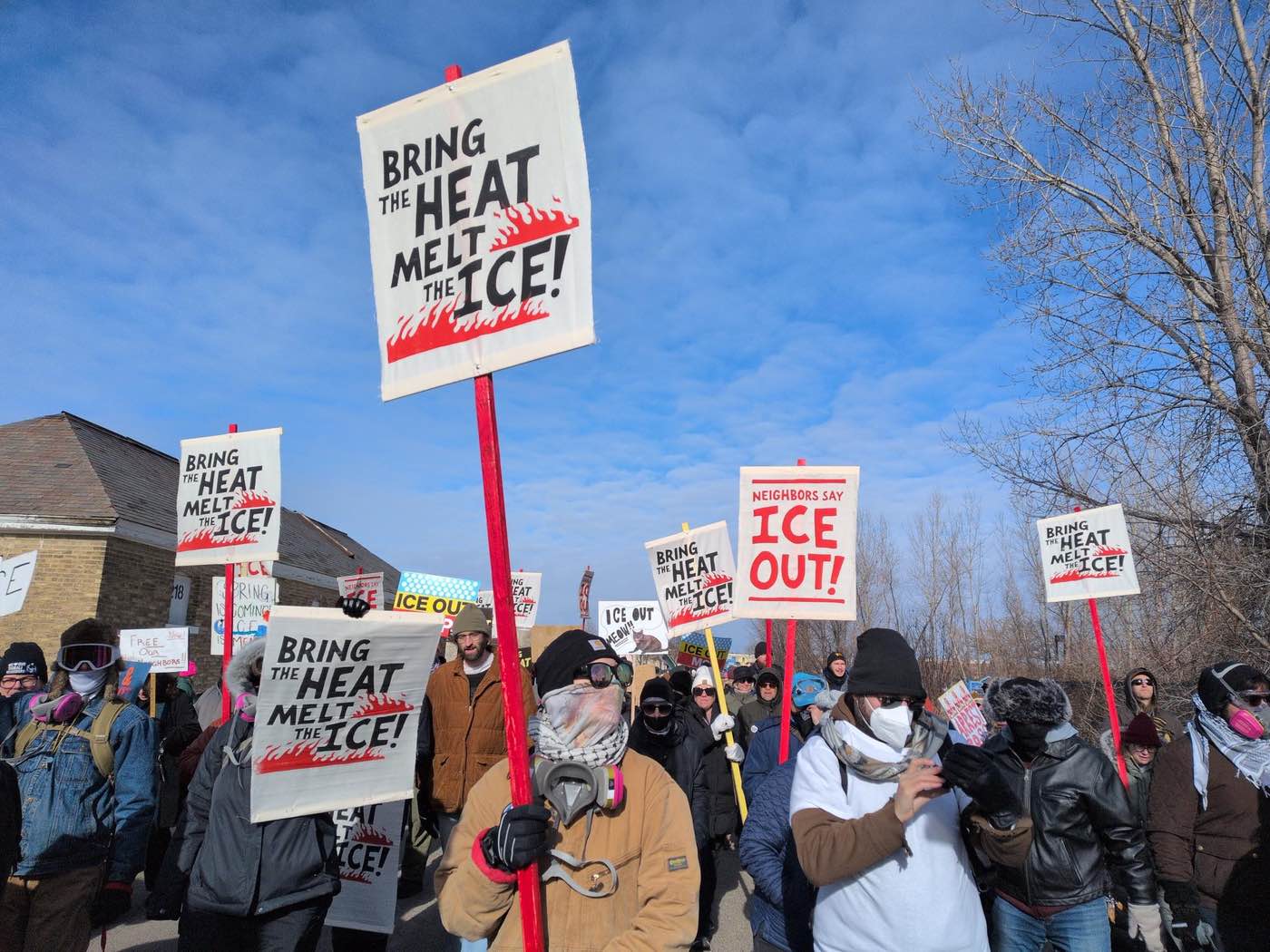 From February 25 to March 1, aspiring revolutionaries in the Twin Cities hosted hundreds of people who traveled to Minnesota to take part in the Melt the ICE week of action. Multiple events took place every day, including marches, blockades, noise demos, speaking events, and trainings. These actions and workshops served both to bolster the resistance against Immigration and Customs Enforcement agents in Minnesota and to teach activists from all over the country how to export the Twin Cities’ rapid response model to their hometowns.
