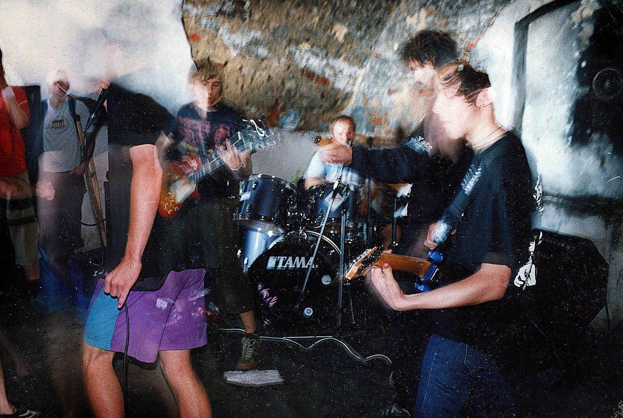 We rehearsed together long and hard, trying to learn to play instruments and create what would later be known as Sandinista! We walked together through the night city, its parks, outskirts, forests, and seashores. We listened to music, read Heartattack!, Inside Front, and Vzorvanoe Nebo [Exploded Sky], exchanged recordings, argued, participated in the first anti-fascist actions, prepared and distributed food to the homeless, and traveled to punk festivals and concerts in Moscow, Minsk, Warsaw, Riga, Vilnius, Prague, Pilsen, and Berlin. Our collaborative music-making gradually came to discover its own language, initially influenced by heavy hardcore bands of the 1990s such as Unbroken and “Rather Be Dead”-era Refused and later moved closer to the more raw and politicized hardcore/punk in the vein of Econochrist, Tragedy, and Catharsis.