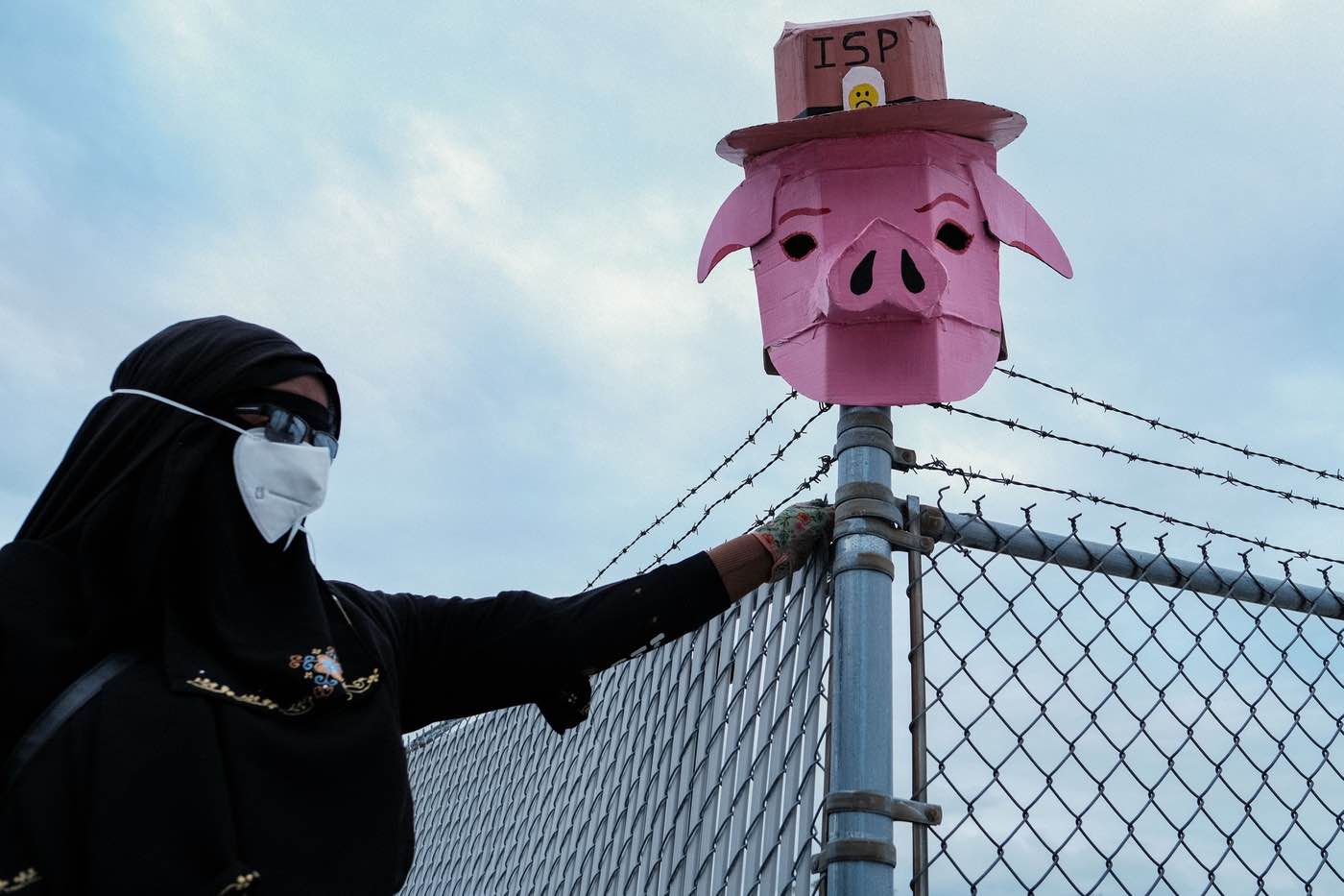 Demonstrators with shields gather outside the Broadview ICE facility on September 19, 2025. Photograph courtesy of Andres A. Chavez.