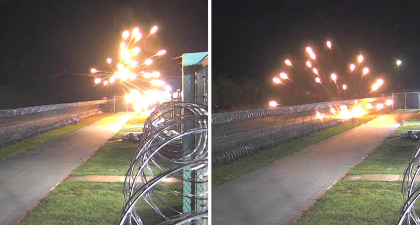 Footage of fireworks allegedly set off at the Prairieland Detention Center during the demonstration of July 4, 2025.